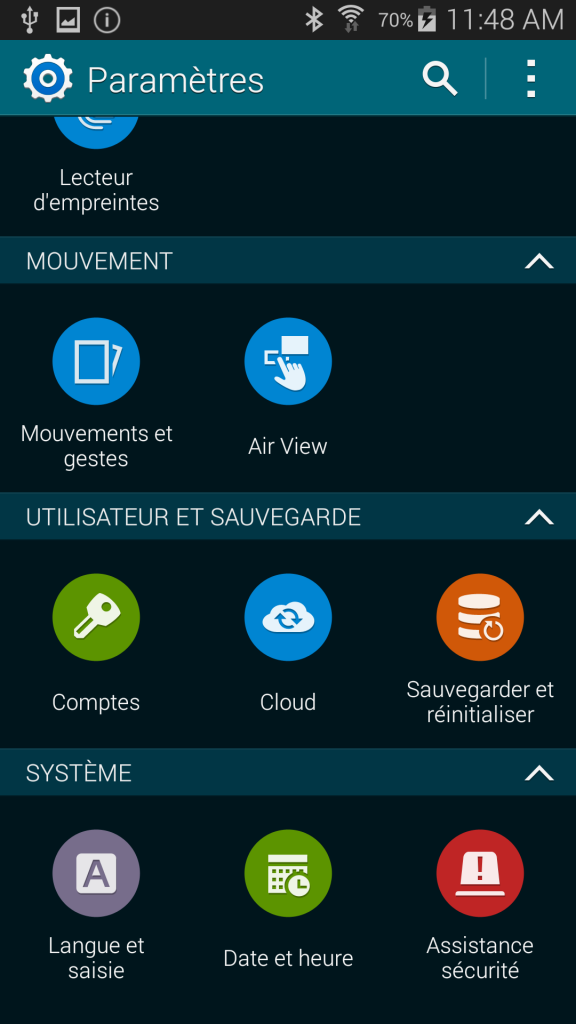 - Rendez vous dans le menu paramètres de votre Samsung galaxy S5