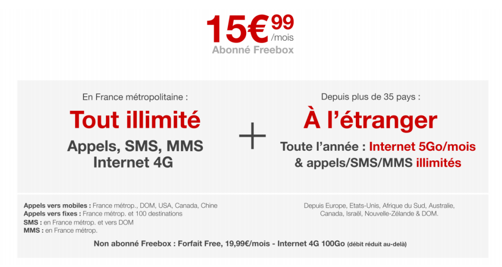 - l’internet 4G pour les abonnés Freebox, et 100Go pour les non abonnés