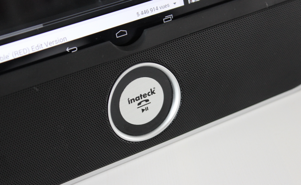 Le son est de bonne qualité pour le prix (performance 2 x 5 watts) en bluetooth et avec le câble jack, la reconnaissance bluetooth est rapide, l’enceinte est peu encombrante. Ce produit est particulièrement intéressant pour faire partager votre musique et vidéos à la maison comme au bureau, mais également pour les conversations vidéos sur Skype ou Hangout, pour le son et la stabilité de la tablette.