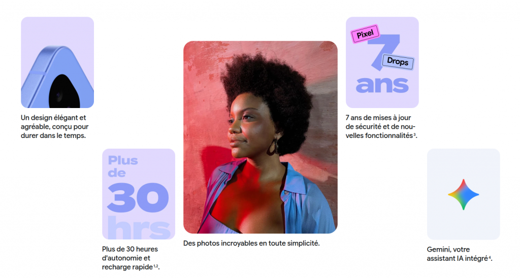 - Logiciel : une expérience Android fluide avec sept ans de mises à jour garanties.